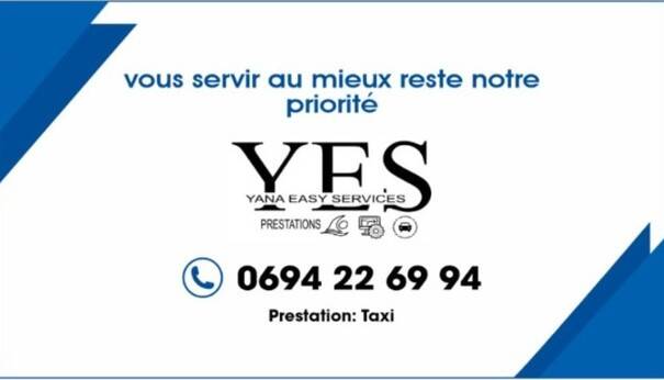 Yana Easy Services (Y.E.S) Prestations Transports en Taxi en Guyane vous propose un service de transport fiable et professionnel, disponible du lundi au dimanche, à des horaires flexibles. Que ce soit pour un trajet quotidien, un transfert vers l'aéroport ou une sortie spéciale, notre équipe est à votre disposition pour garantir un voyage agréable et sécurisé.